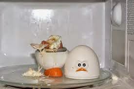 A pressão interna causada pelo micro-ondas nos ovos faz com que eles explodam, mesmo que os ovos cozidos estejam descascados. O ideal é espetá-los com um garfo várias vezes antes de levá-los ao forno.